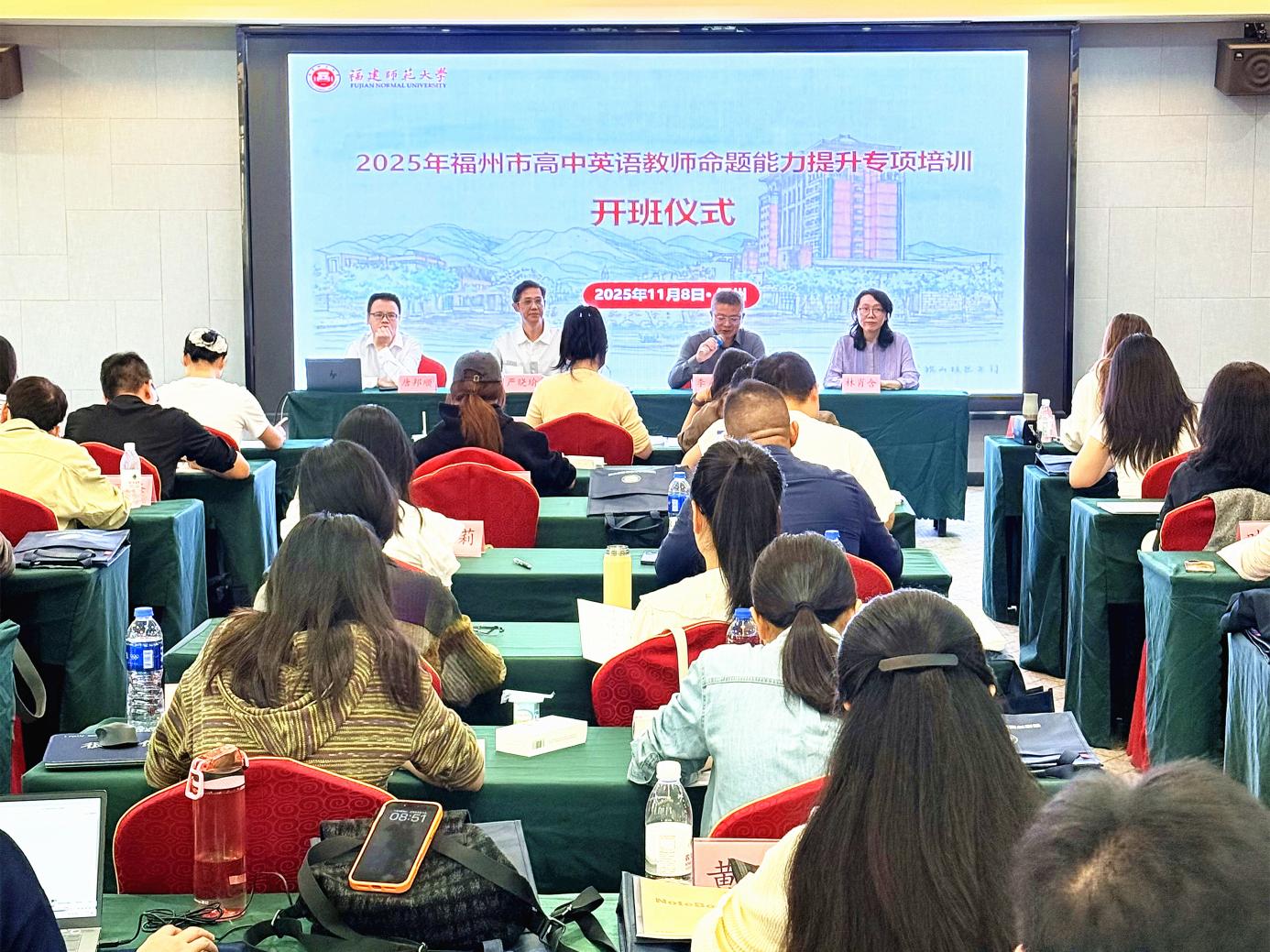 为深入贯彻落实教育强国建设规划纲要,全面推进新时代教育改革创新、深化育人方式变革,紧密贴合高考评价体系中“立德树人”的核心要求,切实提升福州市英语教师的专业素养与命题实践能力,为区域英语教育高质量发展筑牢师资根基,由福州市教育局、福州教育研究院联合主办,福建师范大学外国语学院承办的“2025年福州市高中英语教师命题能力提升专项培训”于11月8日在福建师范大学仓山校区正式启动。