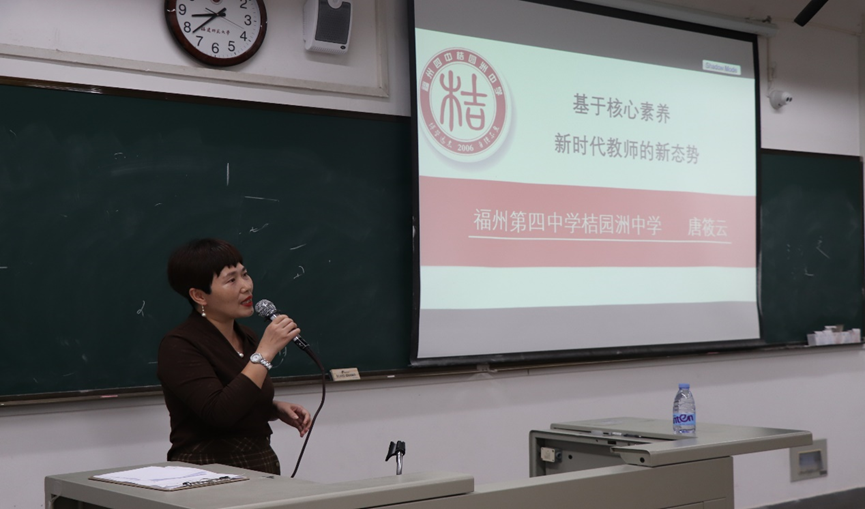 2021年11月1日上午,福州第四中学桔园洲中学副校长、中学高级教师、福州市骨干教师唐筱云老师为外国语学院英语师范专业学生开展题为《基于核心素养的新时代教师的新态势》的讲座,讲座由英语教育系主任闫小斌博士主持,英语教育系副主任陈素梅博士及百余名本科生、研究生到场参加。