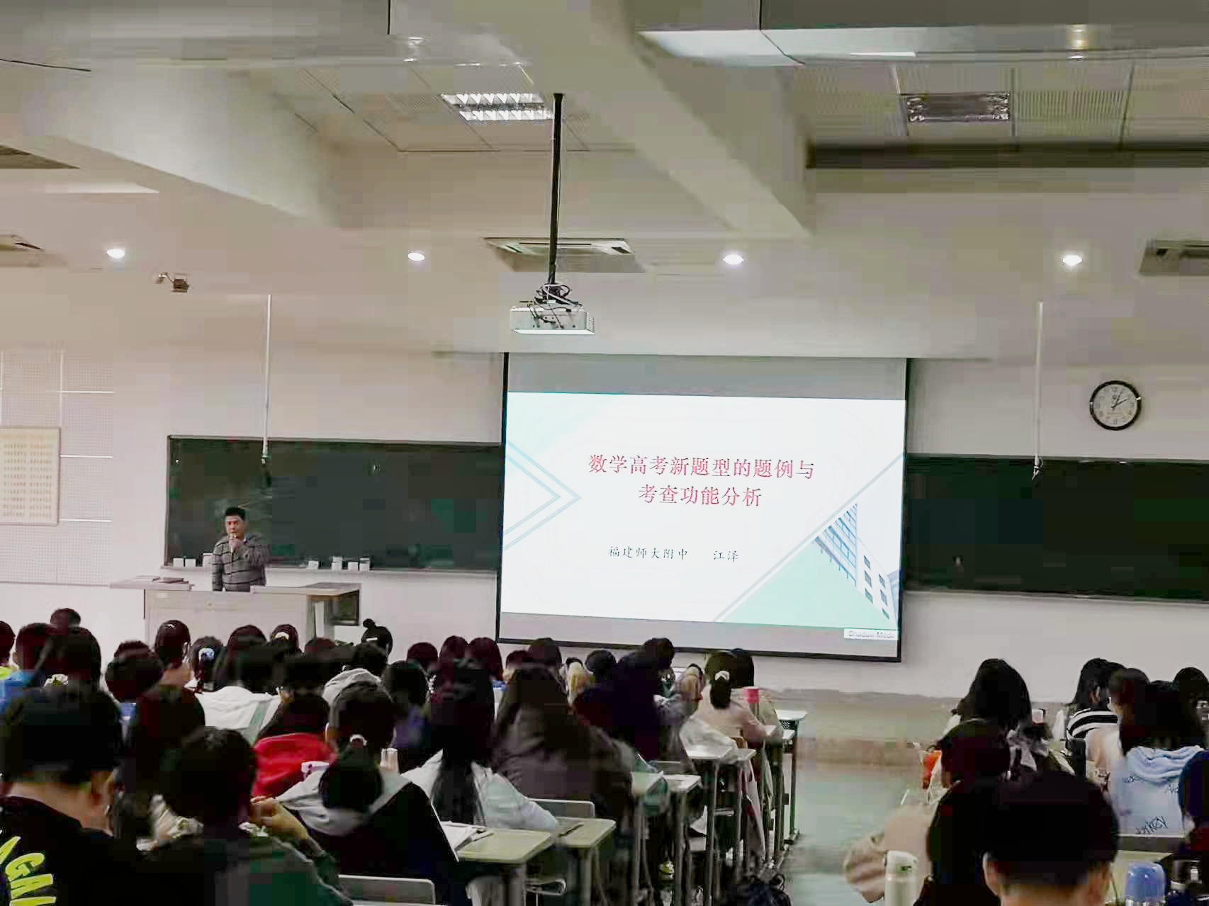 11月3日下午,邀请福建师范大学附属中学正高级教师江泽老师为数学师范生开展《数学高考新题型的题例与考查功能赏析》讲座。江泽老师向同学们分析了国家对高考改革的重大举措,并分享了高考文理不分科后数学学科考试的相关研究进展。互动环节上,江泽老师耐心解答了同学们的提问,使同学们进一步了解新高考背景下的新题型及其考察功能赏析。