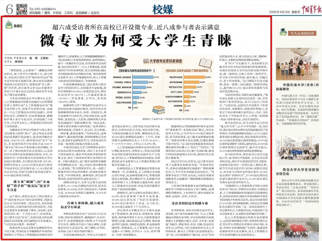 近日,我校“人工智能+短视频(短剧)创作”微专业获《中国青年报》报道。该微微专业紧扣人工智能影像生成前沿技术,坚持“服务国家战略、贴合行业需求”导向,构建“知行合一、素养为先”的跨学科育人模式,通过产教融合、实战教学,推动学生技术技能、审美素养、思辨能力与职业素养协同提升。微专业建设以来,学生作品先后荣获“第三只眼看中国”国际短视频大赛最佳作品、第十七届“海峡论坛·海峡视听季”一类最佳作品等省级以上奖项15项;创作短视频70余条,全网点击量近亿次;参与中国数字峰会等直播活动,在线观看量超2万人次。相关育人成效曾获《福建日报》、东南卫视、海博TV等主流媒体报道。
