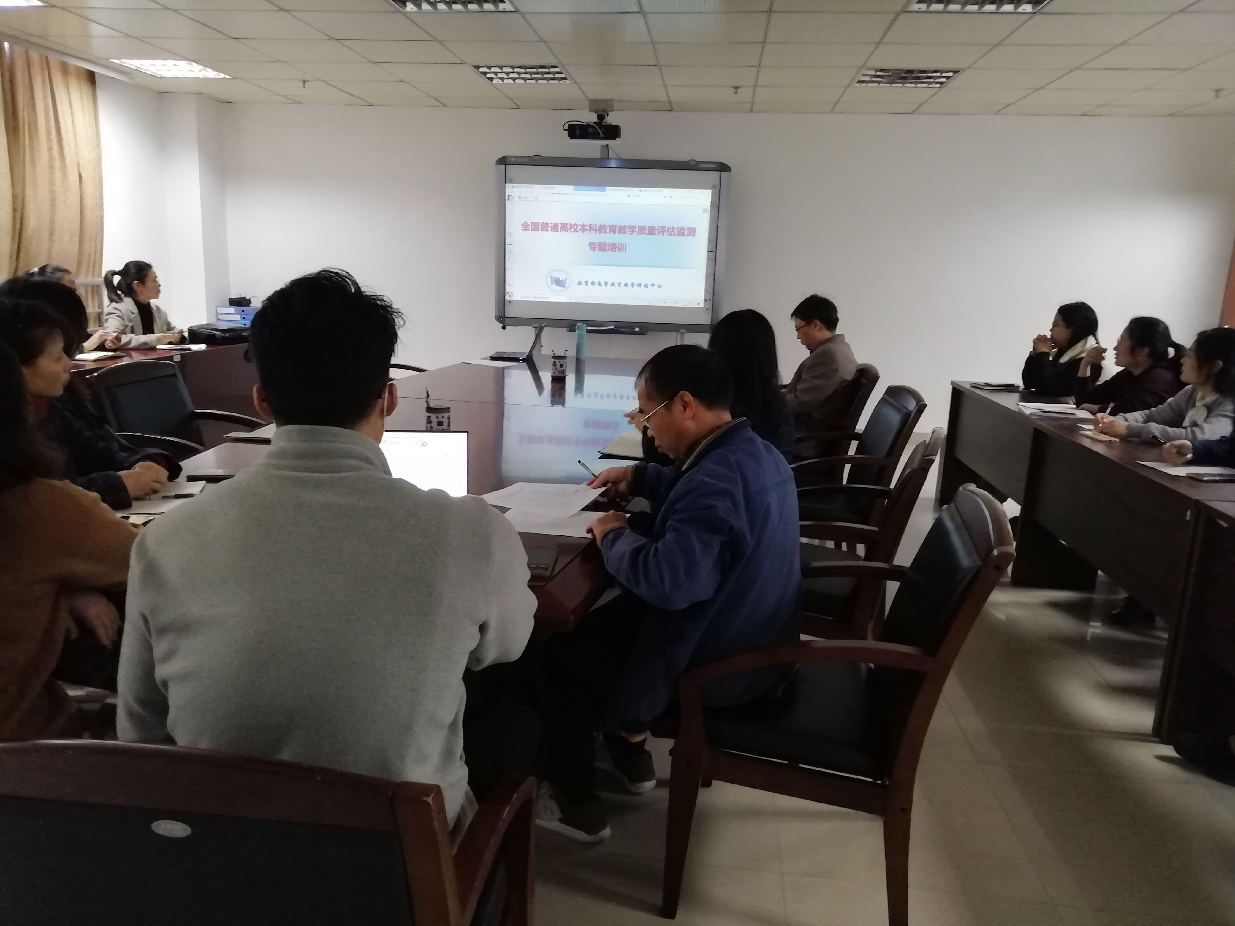 2021年11月30日上午,教务处组织各学院教学管理人员在行政楼第三会议室以视频方式参加全国普通高校本科教育教学质量评估监测专题培训。
