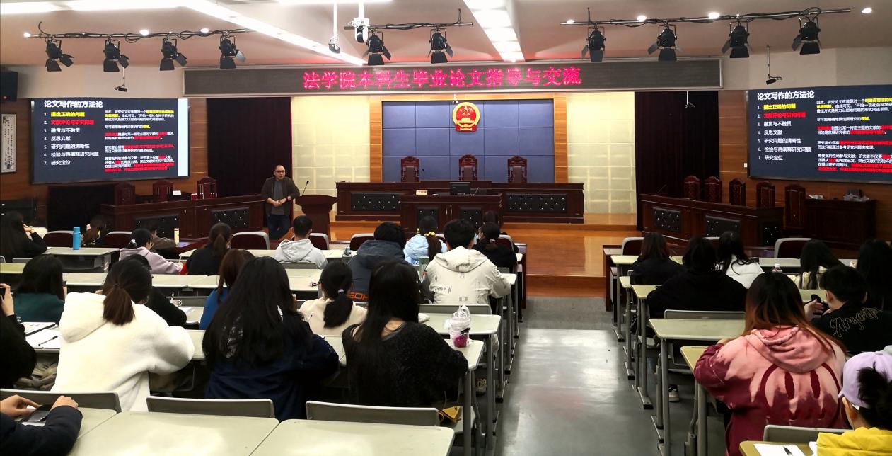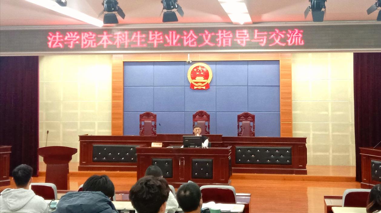 为切实保障本科生毕业论文的顺利开展,2021年12月10日下午,法学院在模拟法庭开展本科生毕业论文指导与交流活动,并邀请了任利仁老师,董学智老师担任主讲,本科2018级学生积极参加。