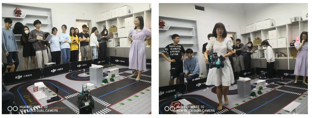 图4 人工智能与机器人实验室中,同学们组装调试交通机器人,验证“智慧交通”解决方案,开展队间竞赛活动
