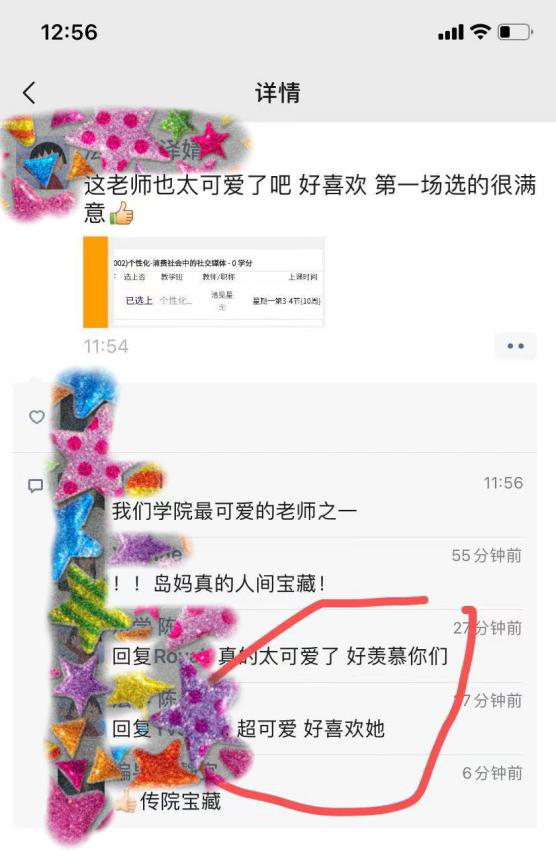 “我现在有点紧张,如果招待不周,还望大家谅解,纯属个人行为,传院的老师都很优秀,不是我这个样子。”池见星老师以生动风趣的开场白,营造出轻松愉悦的氛围和状态,带领在场百余名不同学院的学生走进这堂以《消费社会中的社交媒体》为主题的课程。从“消费”在社交媒体中的魔幻现实主义呈现,到社交媒体在消费社会中的作用和特点,严谨不失幽默的授课风格,加以不时的互动与细致的讲解,池见星老师耐心引导同学们深入思考“面对消费社会中的社交媒体我们能做些什么”。课程结束后,“可爱老师”“听岛妈讲相声”“第一场课选得很满意”等词句迅速刷屏朋友圈,同学们纷纷感慨传播学院拥有“宝藏老师”,对池见星老师及其课程给予高度评价。始终秉持诲人不倦的职业精神,用心带领学生在学习路上摸索前进,正是以池见星老师为代表的传播学院教师群体对教师使命的温暖诠释。