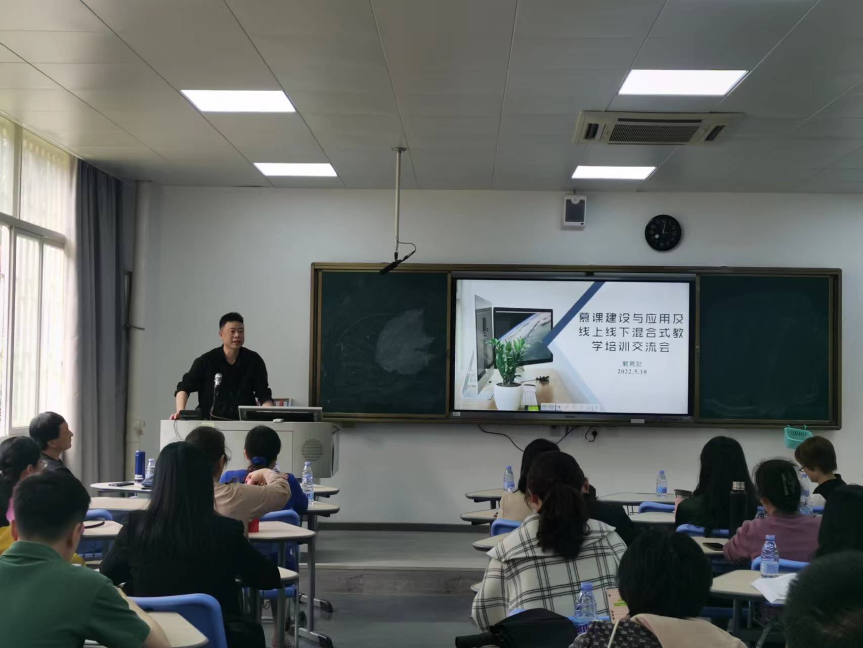 5月18日,教务处在旗山校区致广楼1-106B教室举办慕课建设与应用及线上线下混合式教学培训交流会,我校2022年慕课立项课程负责人和团队成员、国家一流课程负责人江剑平副教授、教务处副处长宋原、课程与教材科及慕课课程顾问等参加了会议。