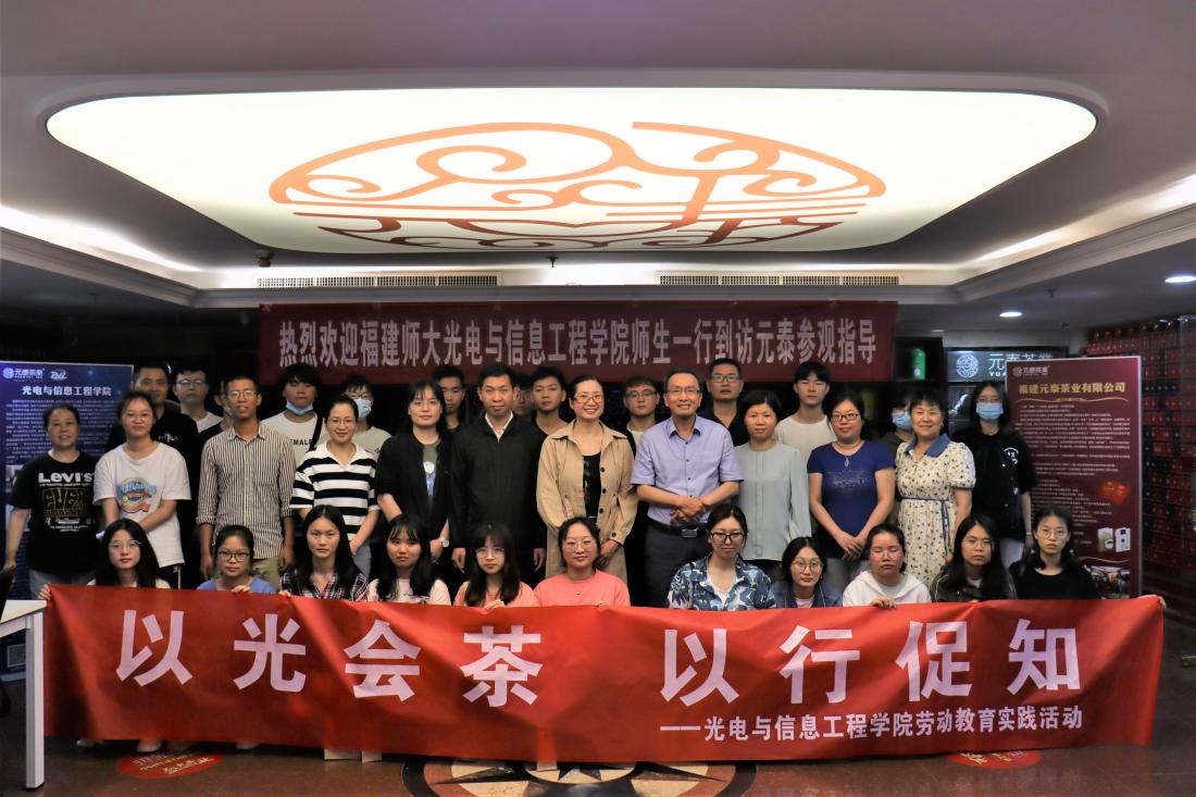 为了全面贯彻素质教育方针、推进劳动教育课程的授课深度、完善教学活动过程,6月8日下午,我院光科系副主任朱莉莉副教授、教师廖日威博士、2020级光电信息科学与工程专业学生共28人赴福建师范大学--张天福(元泰)有机红茶科技劳动教育基地参观交流。元泰茶业董事总经理魏文生、元泰励勤职业技能培训学校校长郑火娇等代表参加活动。